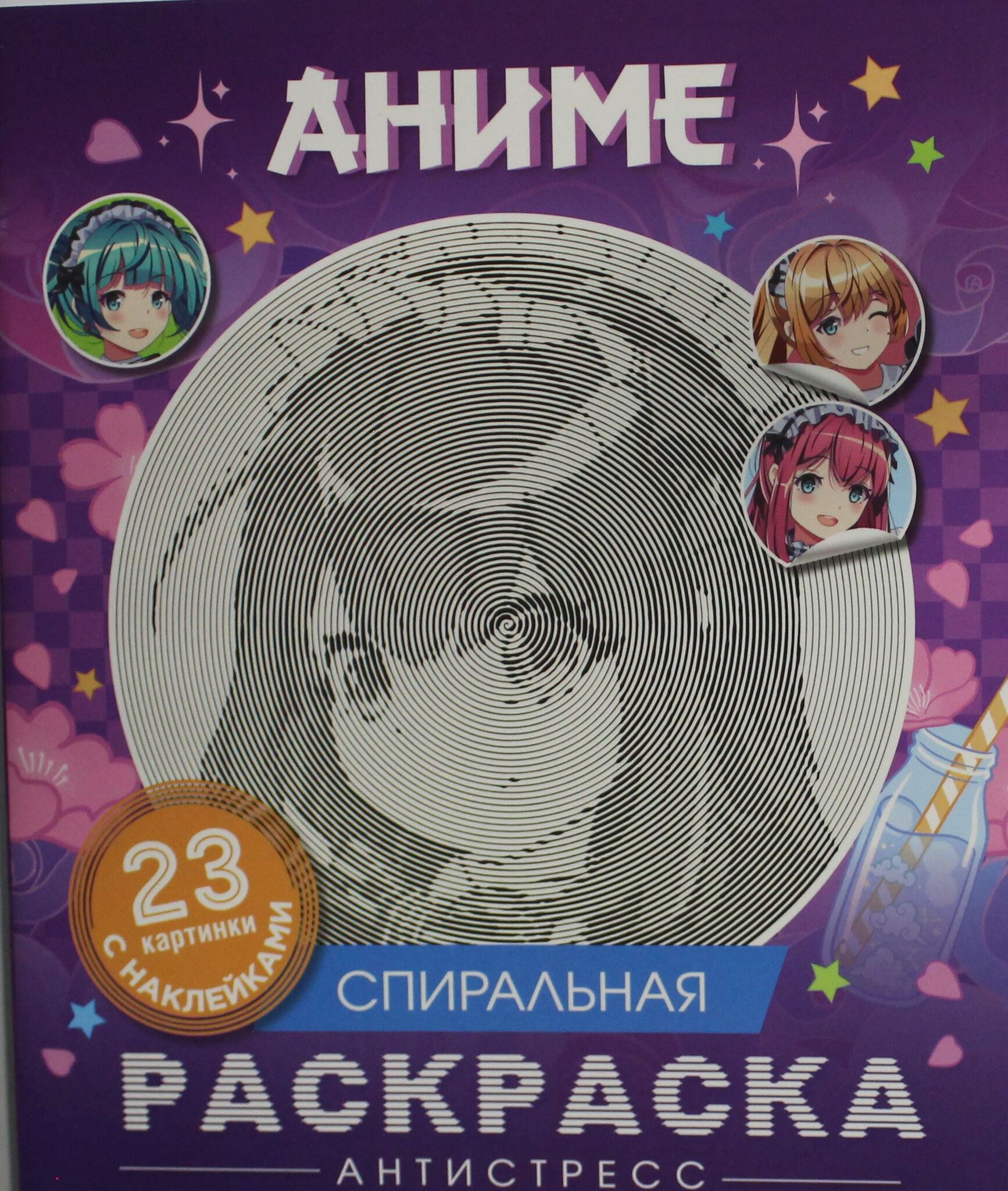 Серия спиральных раскрасок-антистресс поможет успокоиться и расслабиться. 23 зашифрованные картинки завладеют вашим вниманием, как только карандаш коснется спирали. В комплекте к каждой картинке вы найдете подходящую наклейку. Подбирайте стикеры и отмечайте ими законченные картинки, приклеив на страницу. Отвлекитесь от ежедневной суеты вместе с персонажами в стиле аниме.