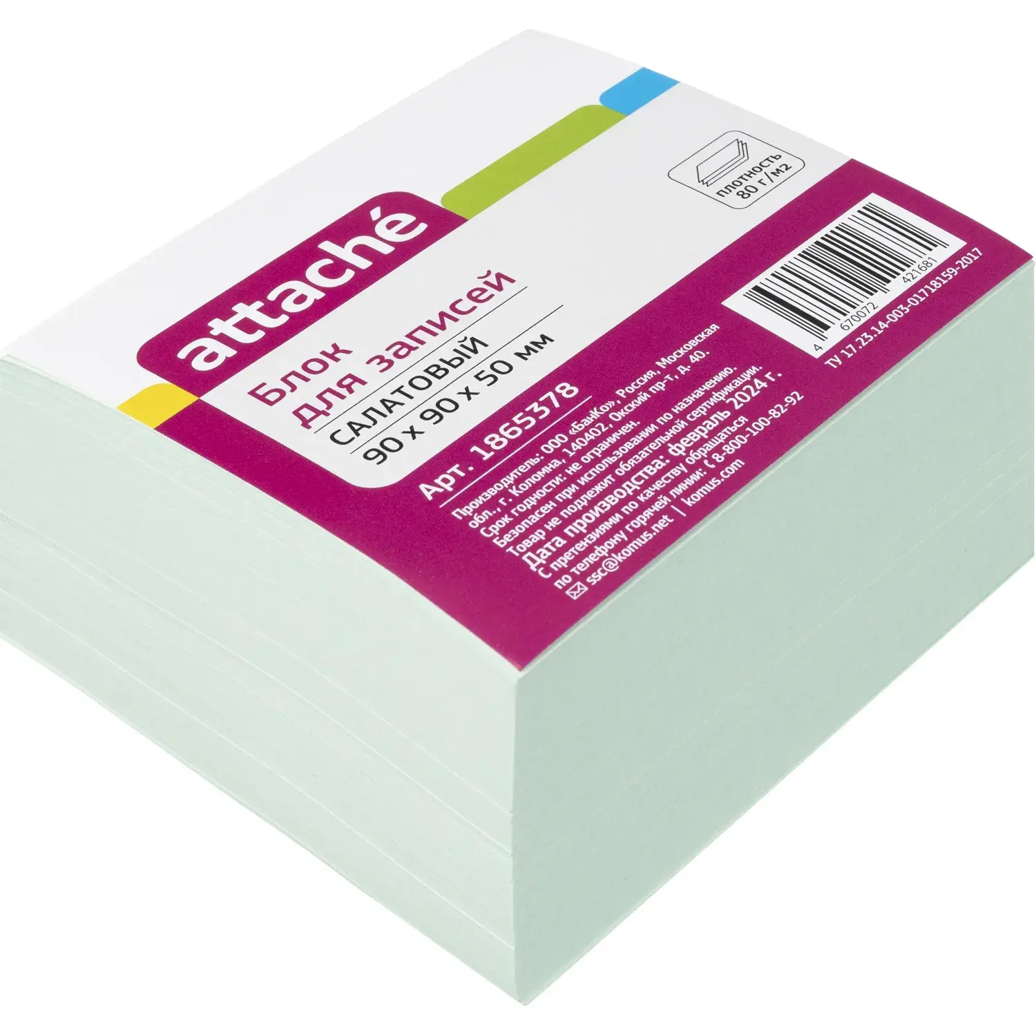 Блок для записей Attache 90x90x50 салатовый 80г – купить за 179 ₽ | Книги в дом