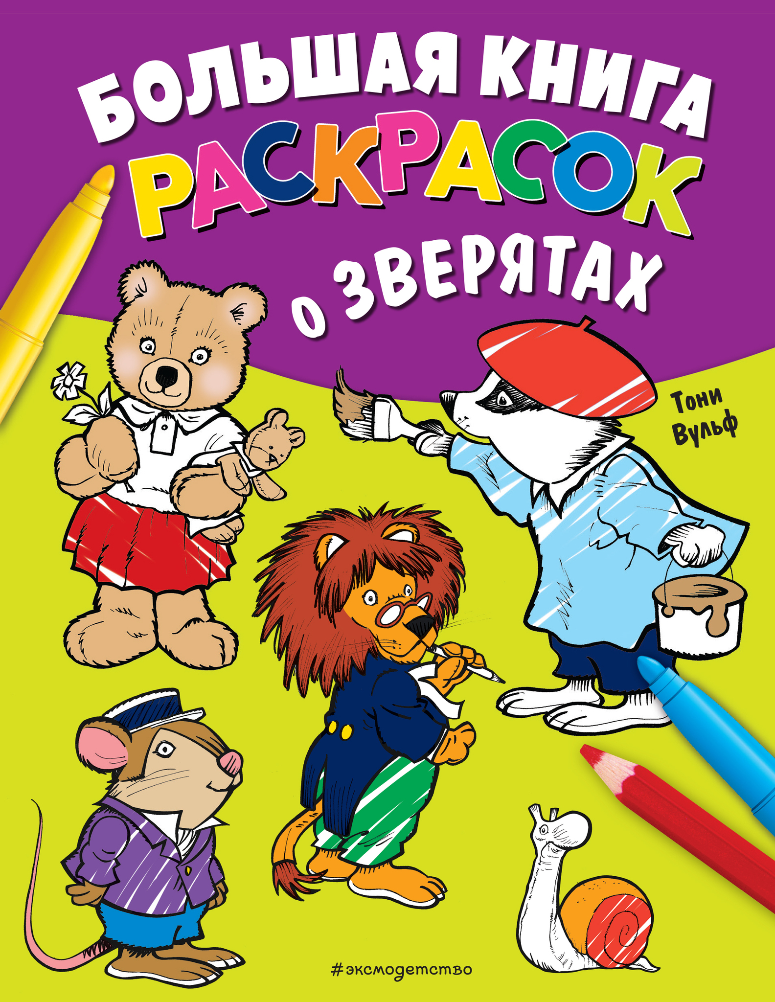 В этой книге представлено более 60 самых разных зверей, нарисованных прославленным итальянским художником Тони Вульфом. Весёлые и добрые, они непременно очаруют вашего малыша. Подарите ему часы увлекательного раскрашивания и рисования!