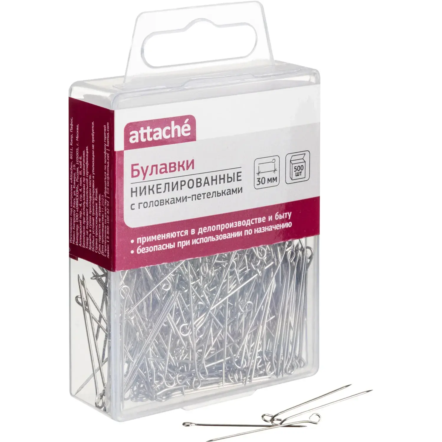 Булавки унив. с гол.петель. ник. Attache, 30 мм, 500 штук, в пласт кор – купить за 232 ₽ | Книги в дом