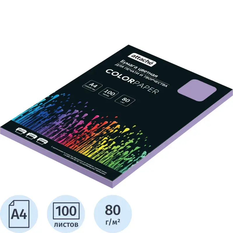 Бумага цветная Attache (фиолетовый пастель), 80г, А4, 100 л – купить за 434 ₽ | Книги в дом