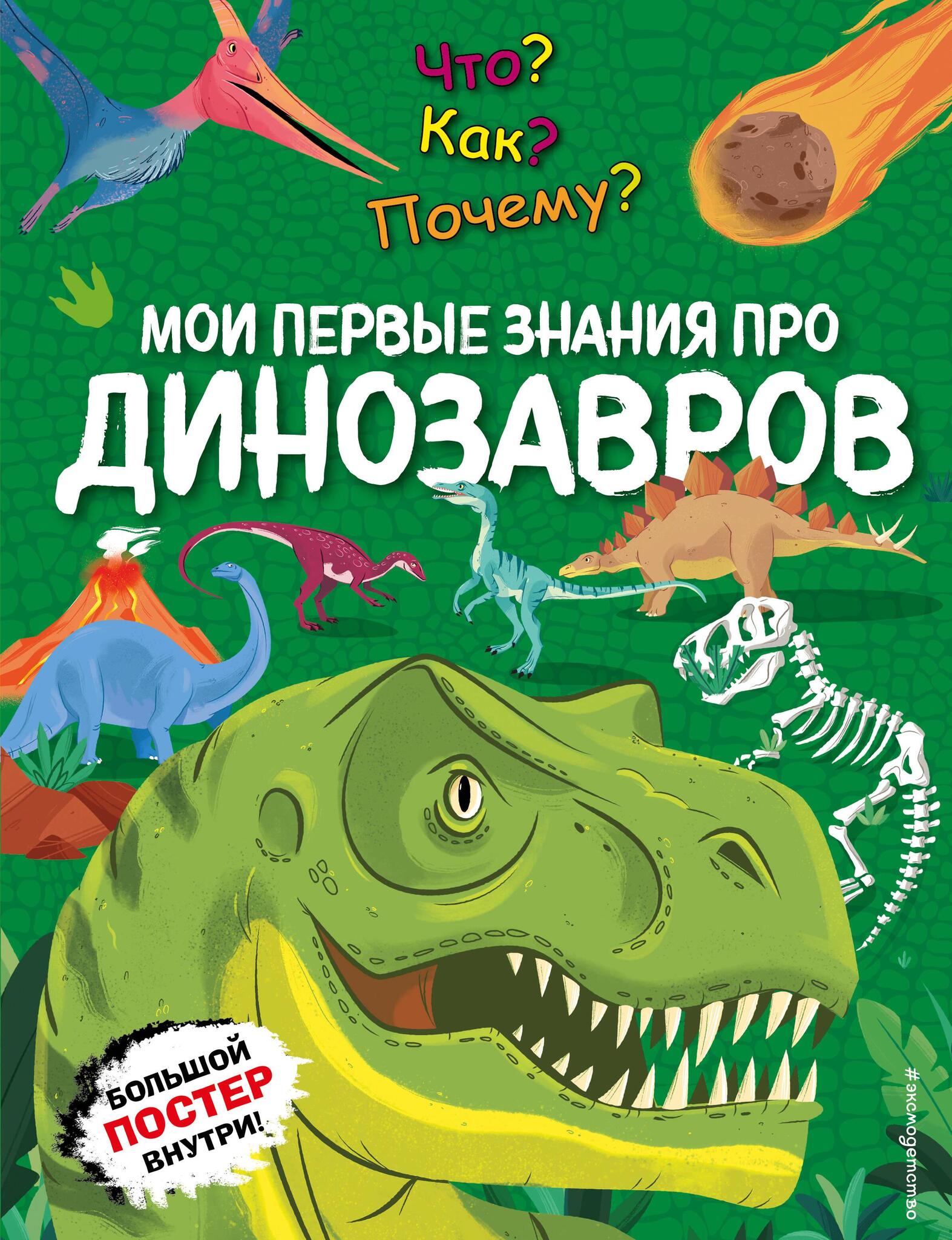 Интересная и познавательная энциклопедия для малыша, из которой он получит первые знания о динозаврах и других животных, населявших нашу планету в древности. Ребёнок узнает много нового о разных динозаврах — хищных и травоядных, о больших и маленьких, наземных, водных и летающих. Ещё его ждут ответы на самые необычные вопросы: как придумывают названия для динозавров, были ли древние ящеры заботливыми родителями, кто из известных динозавров самый свирепый. А в подарок малыш получит большой постер, который поможет ему ещё лучше познакомиться с динозаврами, о которых он узнал из книги.