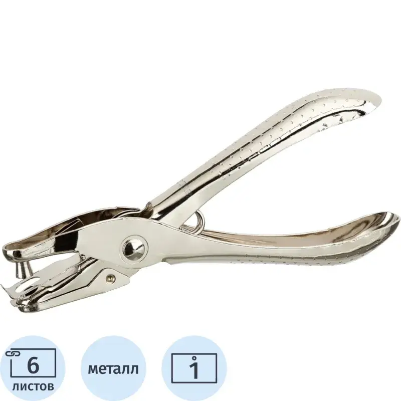 Дырокол Attache на 1 отверстие, на 6 листов, металлический