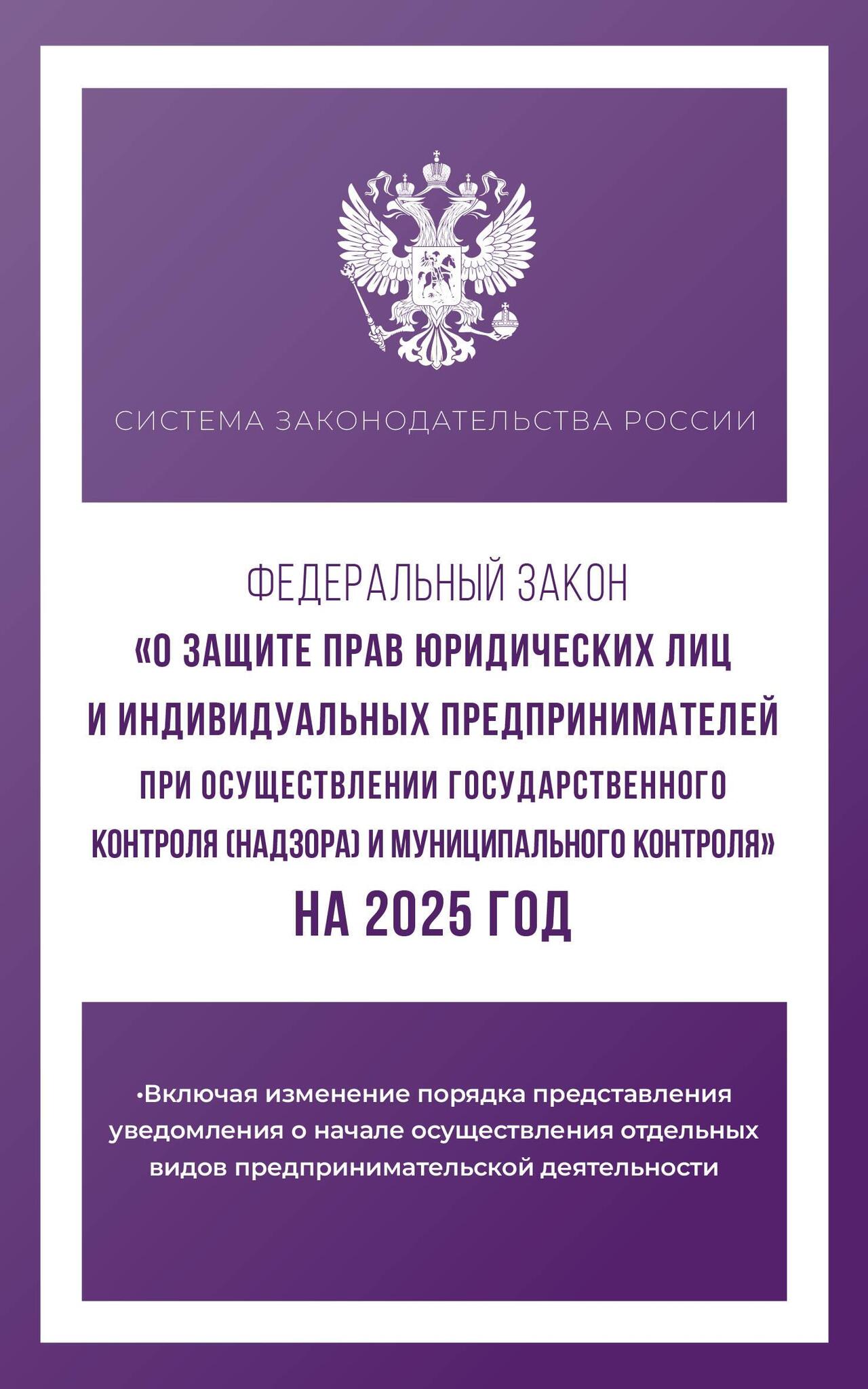 Данное издание включает текст Федерального закона «О защите прав юридических лиц и индивидуальных предпринимателей при осуществлении государственного контроля (надзора) и муниципального контроля» на 2025 год.
