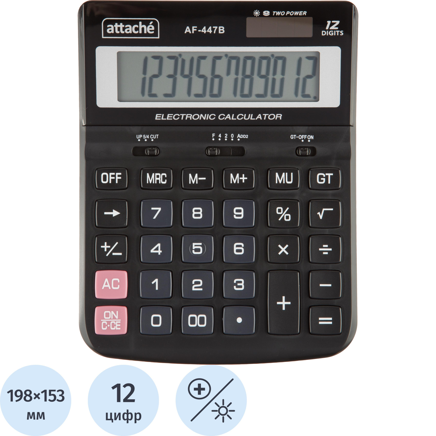 Калькулятор настольный ПОЛНОРАЗМ Attache AF-447B,12р,дв.пит,черн,198x153x42 – купить за 1 222 ₽ | Книги в дом