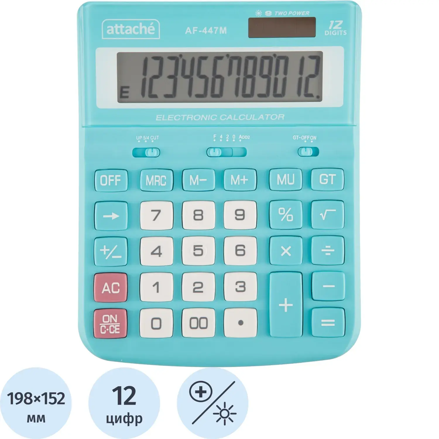 Калькулятор настольный ПОЛНОРАЗМ Attache AF-447M,12р,дв.пит,мятн,198x153x42 – купить за 1 222 ₽ | Книги в дом