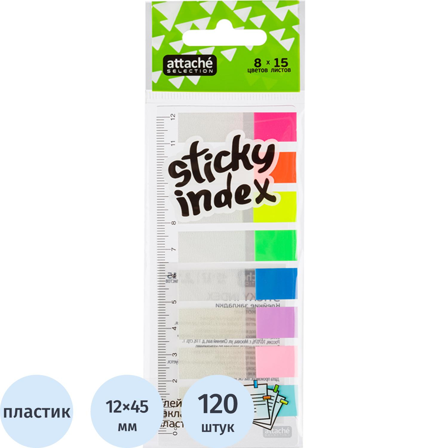 Клейкие закладки пласт. 8цв.по 15л. 45ммх12 Attache Selection – купить за 100 ₽ | Книги в дом