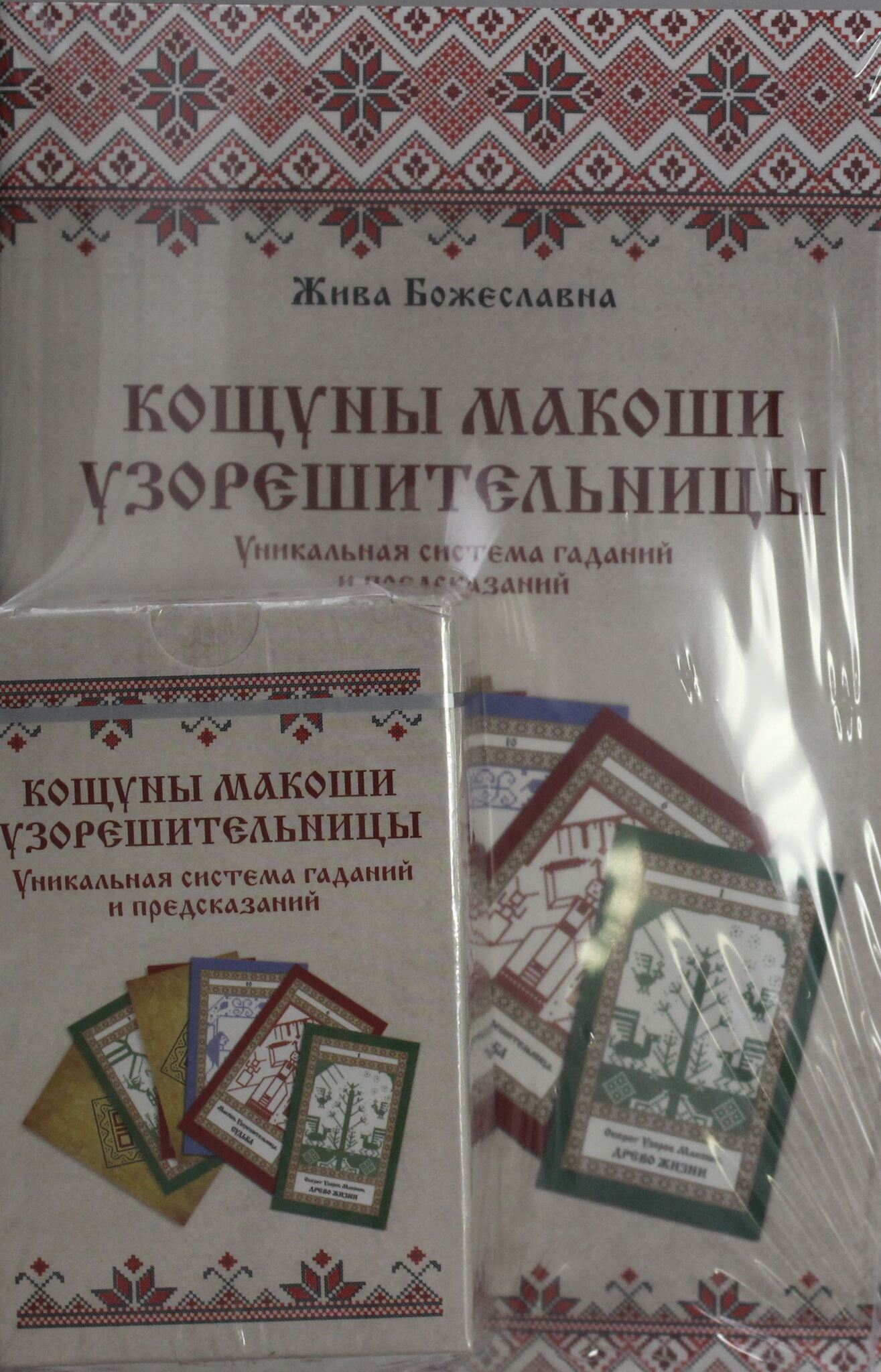 Уникальная, совершенно особенная колода Великой Пряхи Судьбы, богини-рукодельницы, вышивальщицы матушки Макоши, была создана Живой Божеславной по мотивам старинной русской и славянской вышивки и полностью выполнена в стиле узоров для рукоделия. С помощью этой гадальной системы вы разберетесь в себе и своих проблемах, поймете закономерности происходящих с вами событий, узнаете, что от вас зависит, а что нет, найдете ключ к влиянию на окружающих. В книге, которая дополняет колоду карт, вы найдете развернутые толкования к картам-вышиванкам Макоши Узорешительницы, русскому таро, которым пользовались наши предки испокон веков. Чтобы взять жизнь в свои руки, надо постичь ее ход. Спрашивайте у кощунов, они не подведут! В комплекте: — 80 карт для гадания (удобный формат 63х104 мм, плотный белый картон, карточный лак, ровный срез); — брошюра с основными значениями карт в прямом и перевернутом положении; — коробка для хранения. — книга толкований к Кощунам Макоши Узорешительницы.