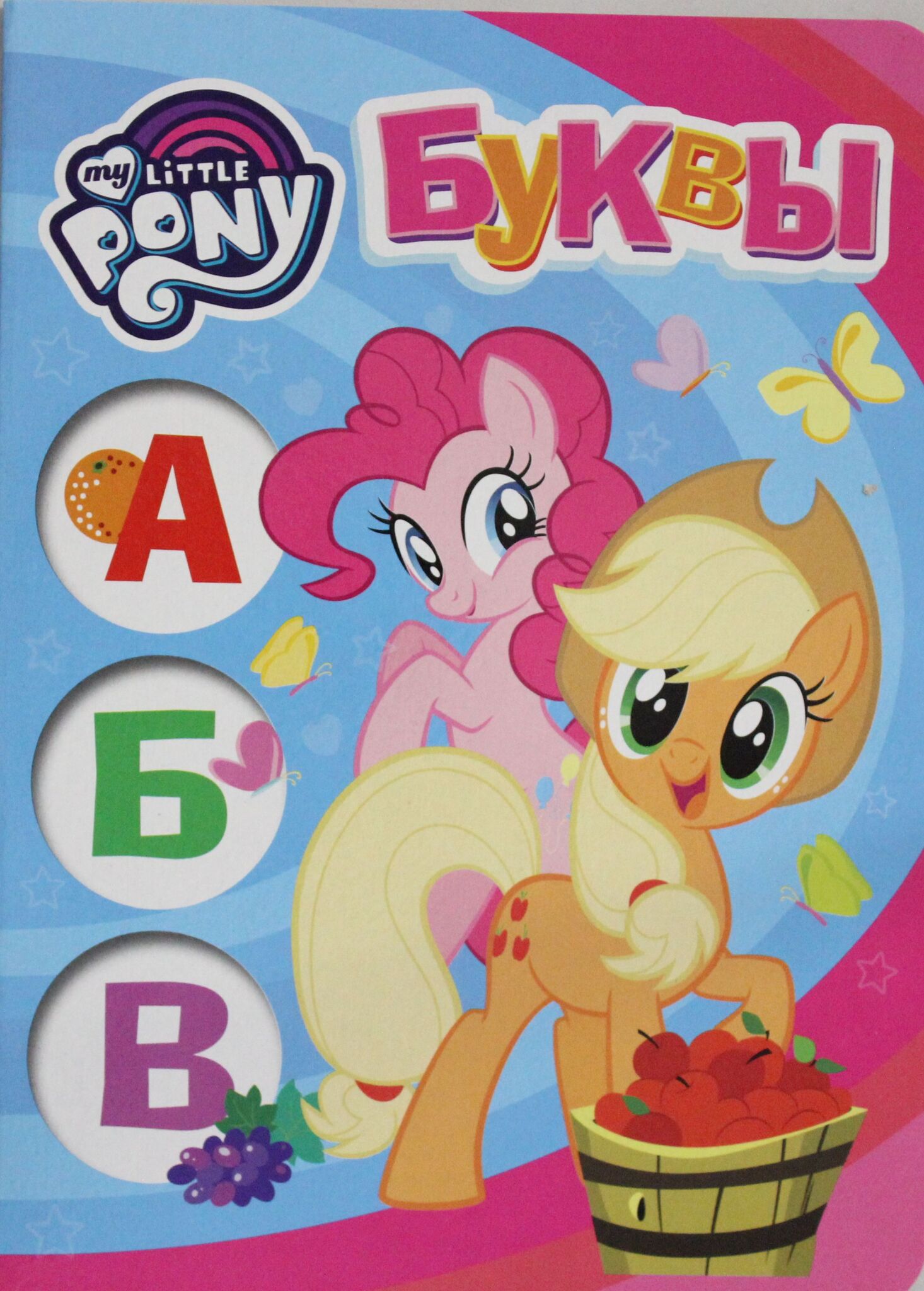 На каждой странице книги вы найдёте изображение буквы и предмета, название которого начинается на эту букву или содержит её.