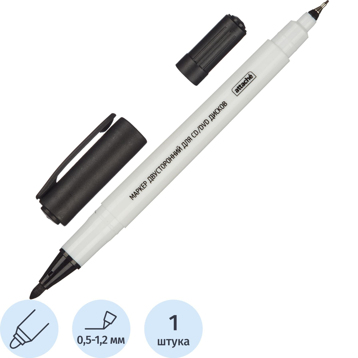 Маркер для CD Attache двусторонний черный 0,5/1,2 мм – купить за 80 ₽ | Книги в дом
