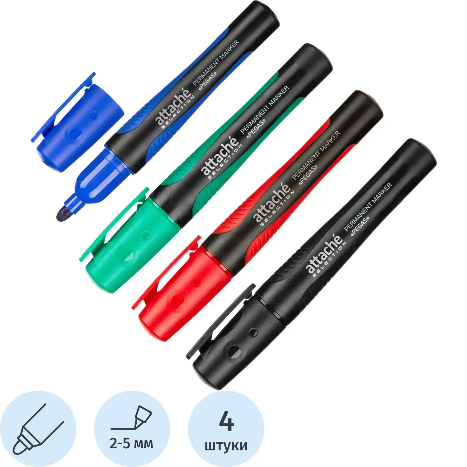 Маркер перманентный Attache Selection Pegas набор 4цв., 2-5мм