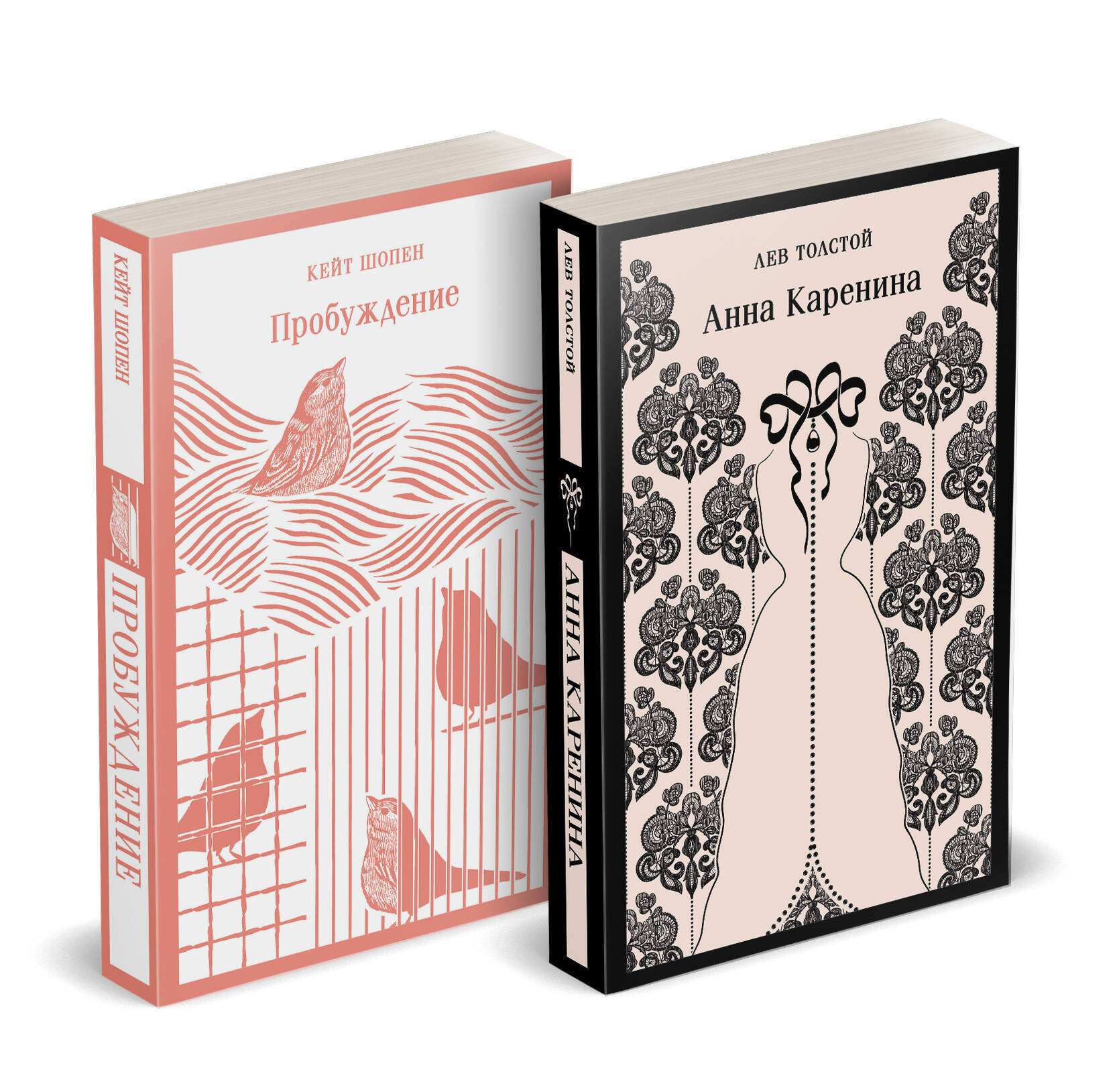 В комплект входят 2 книги: "Анна Каренина" Льва Толстого и "Пробуждение" Кейт Шопен. Произведение объединяет несколько тем, одна из них - изображение женщин как личностей с желаниями и потребностями, которые тогда непозволительно было испытывать женщинам.