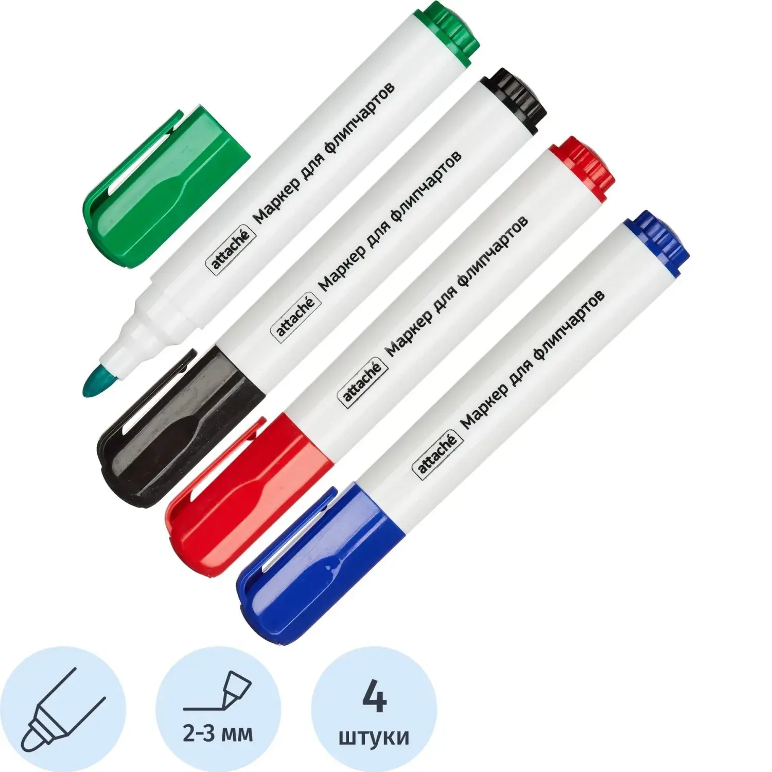 Набор маркеров для флипчартов по бумаге ATTACHE набор 4цв., 2-3мм кругл нак – купить за 314 ₽ | Книги в дом