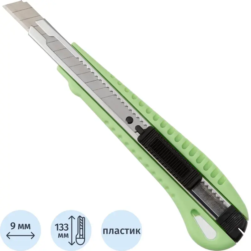 Нож универсальный Attache 9 мм пластиковый мет направл. зелён – купить за 91 ₽ | Книги в дом