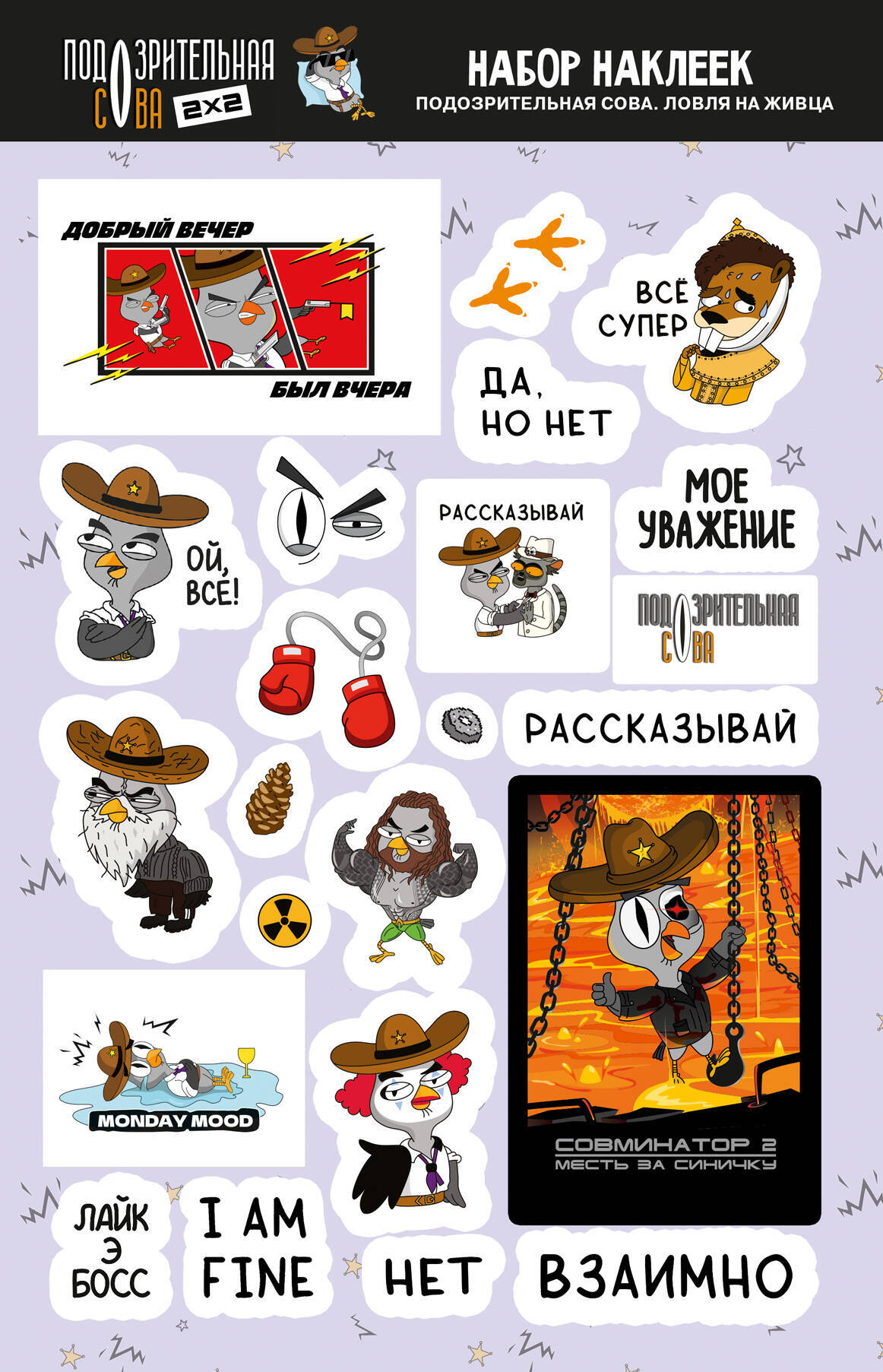 Набор ярких стикеров с любимыми персонажами – отличный подарок для фанатов вселенной Подозрительной Совы.