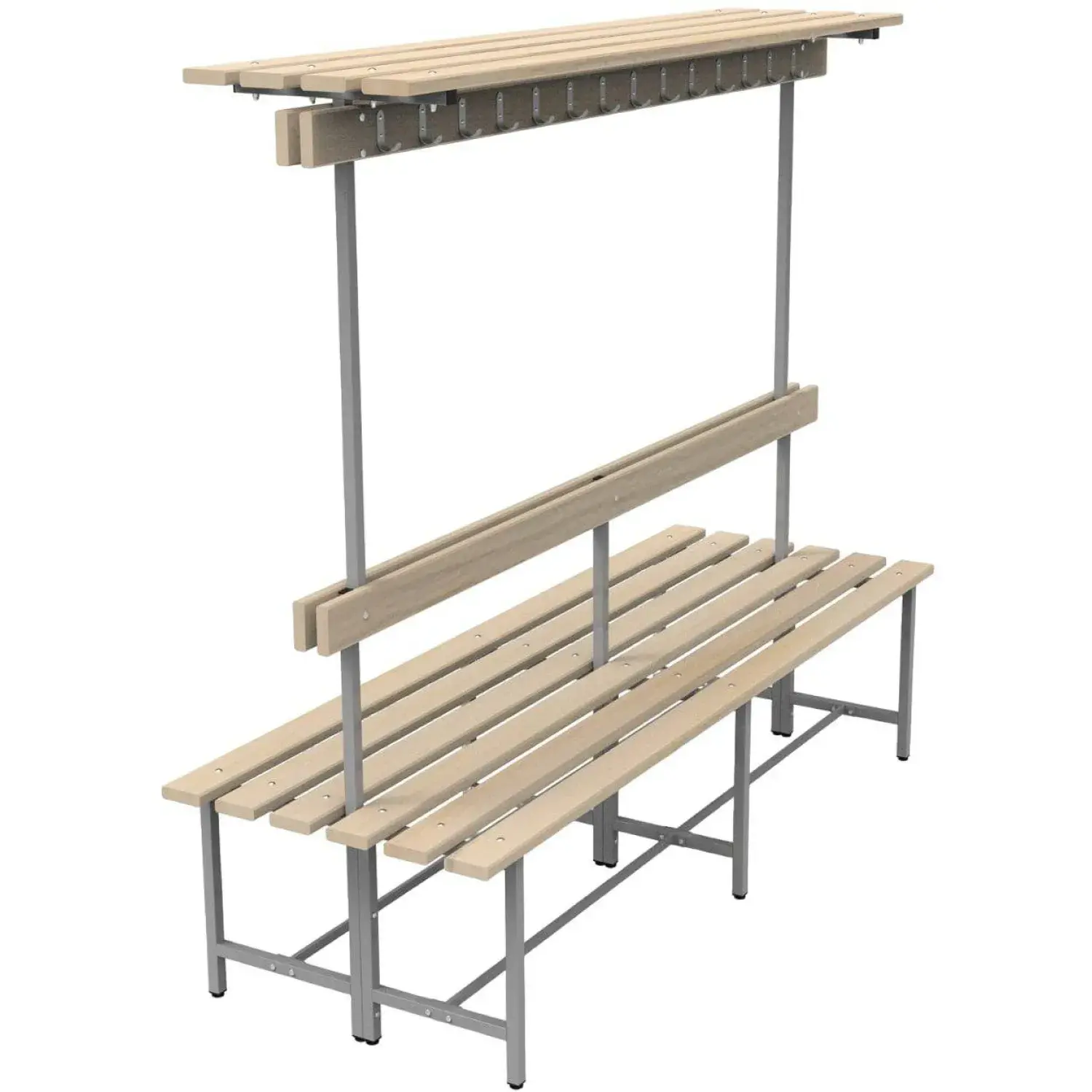 Скамья TI_СВТ-9/2 дерев.доска, 2000 мм, вешалка, полка, рег.опора