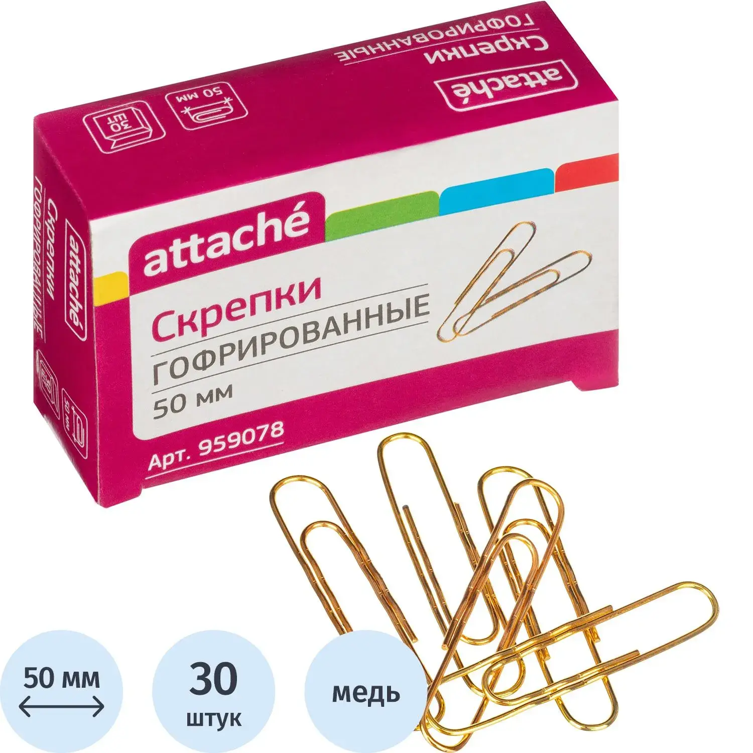 Скрепки Attache омедненные, 50 мм, гофрированные, золотистые, 30 шт/уп – купить за 165 ₽ | Книги в дом