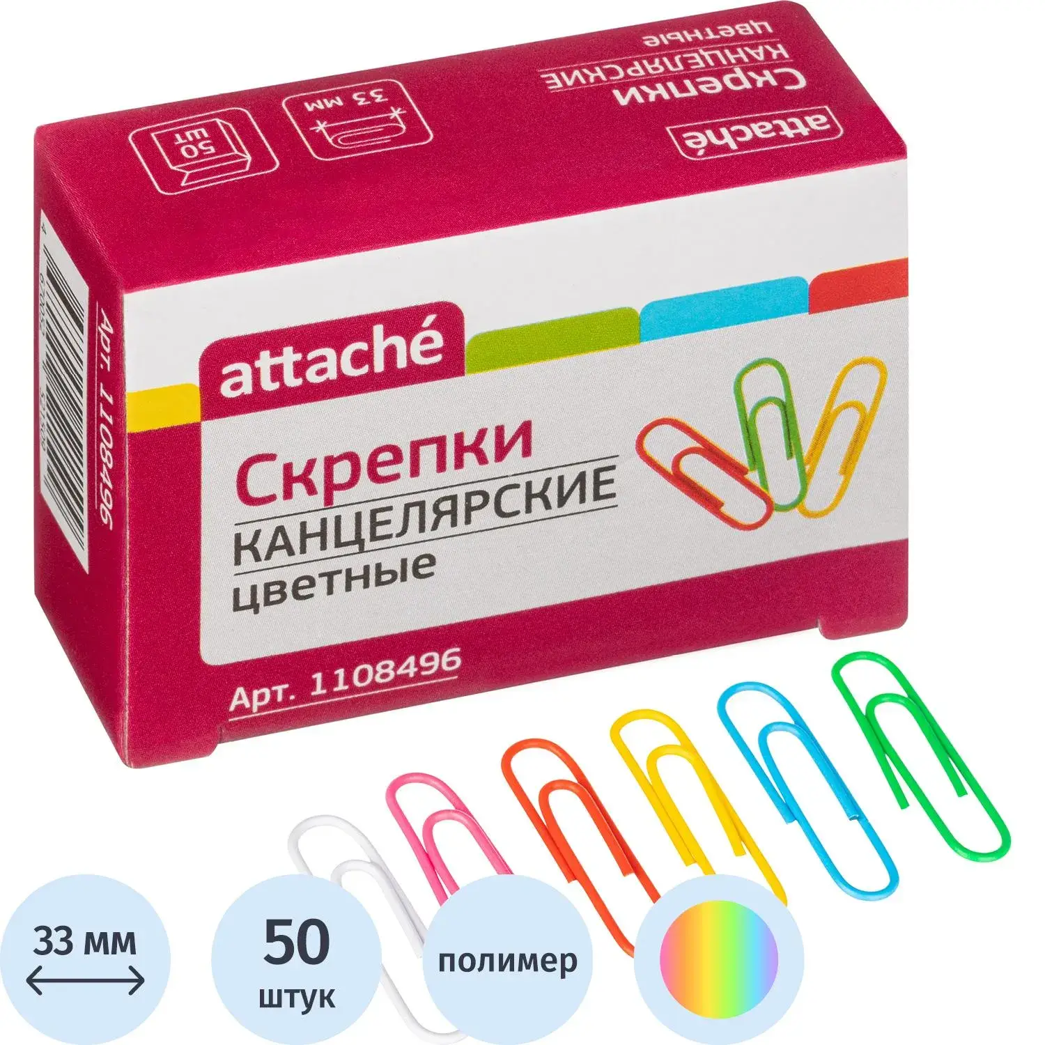 Скрепки Attache с полимерным покрытием,33 мм,разноцветные, 50 шт/уп – купить за 76 ₽ | Книги в дом