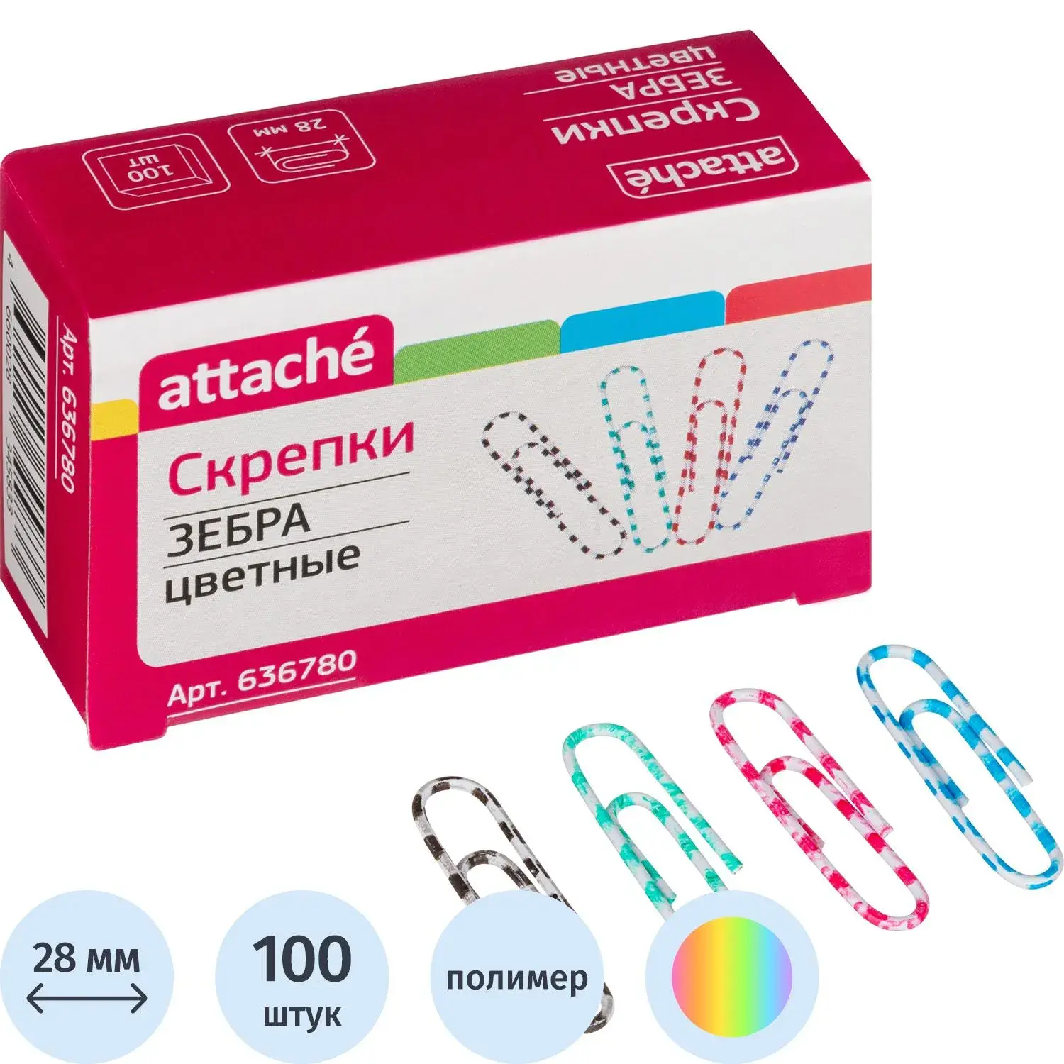 Скрепки Attache Зебра с полимерным покрытием,28 мм,разноцветные,100 шт/уп – купить за 127 ₽ | Книги в дом
