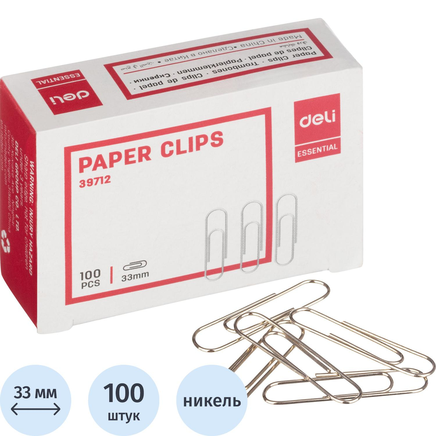 Скрепки Deli никелированные, 33 мм, негофрированные,100 шт/уп – купить за 124 ₽ | Книги в дом