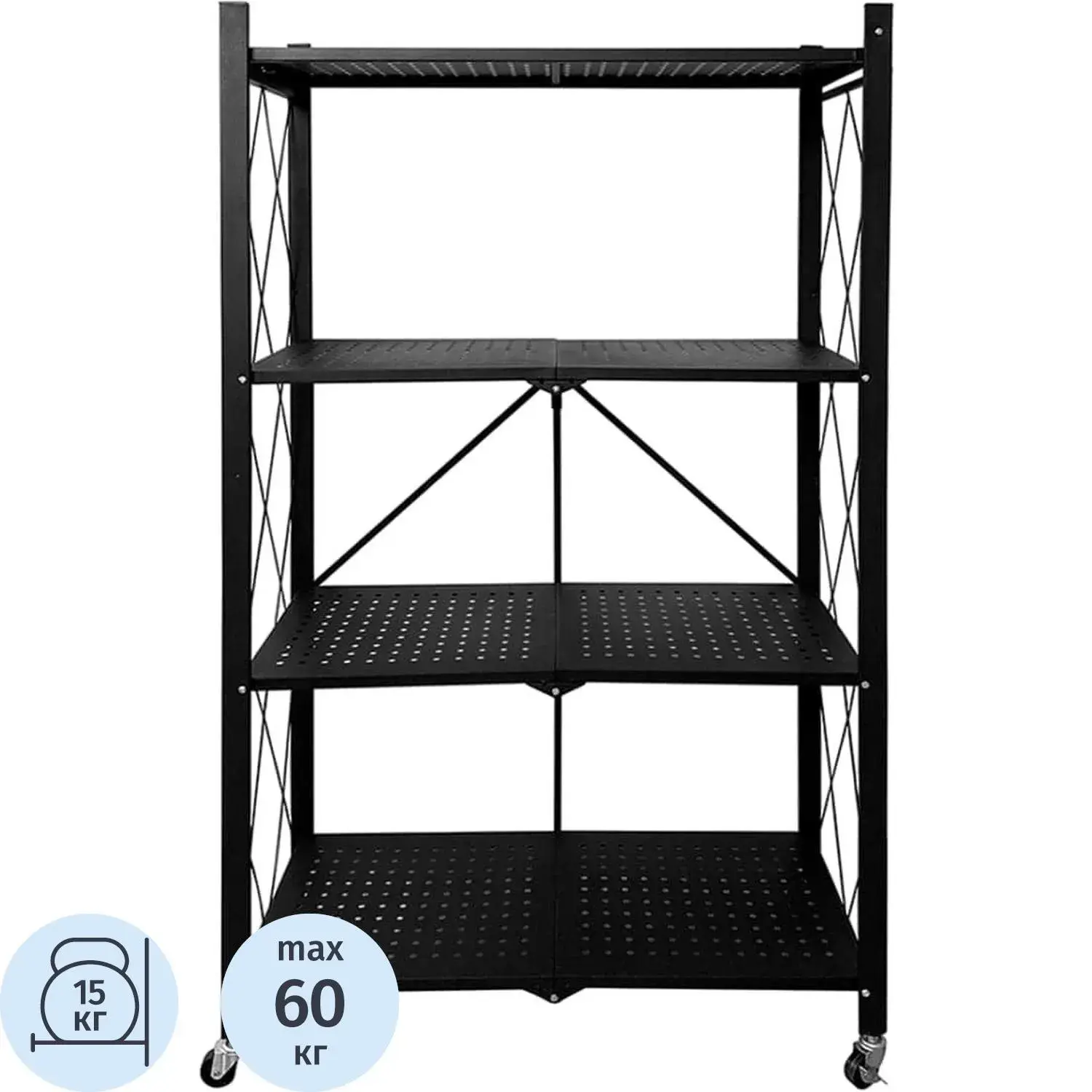 Стеллаж металлический складной Гел_Атлант-4, размер 730х400х1265 мм, черный