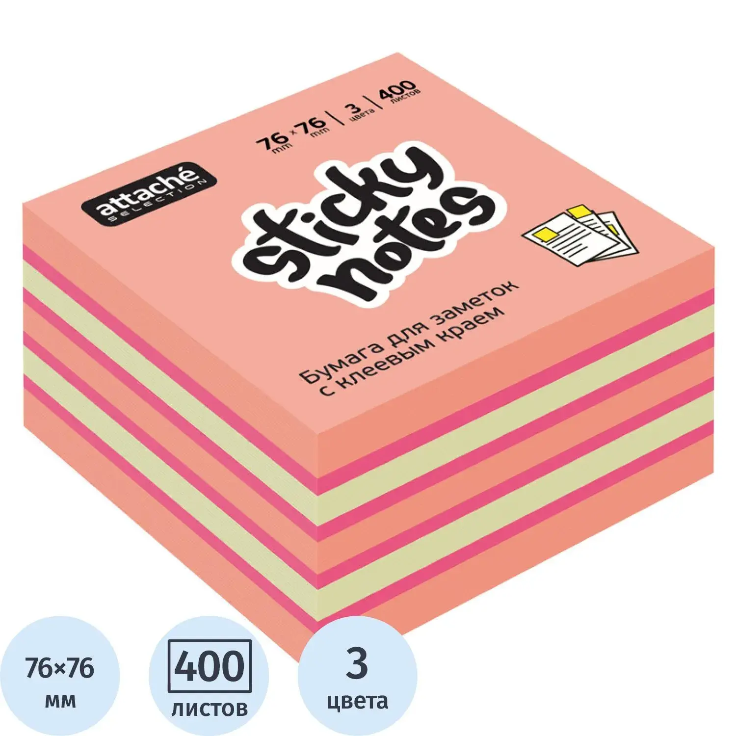 Стикеры Attache Selection куб 76х76, розовый 400 л – купить за 447 ₽ | Книги в дом