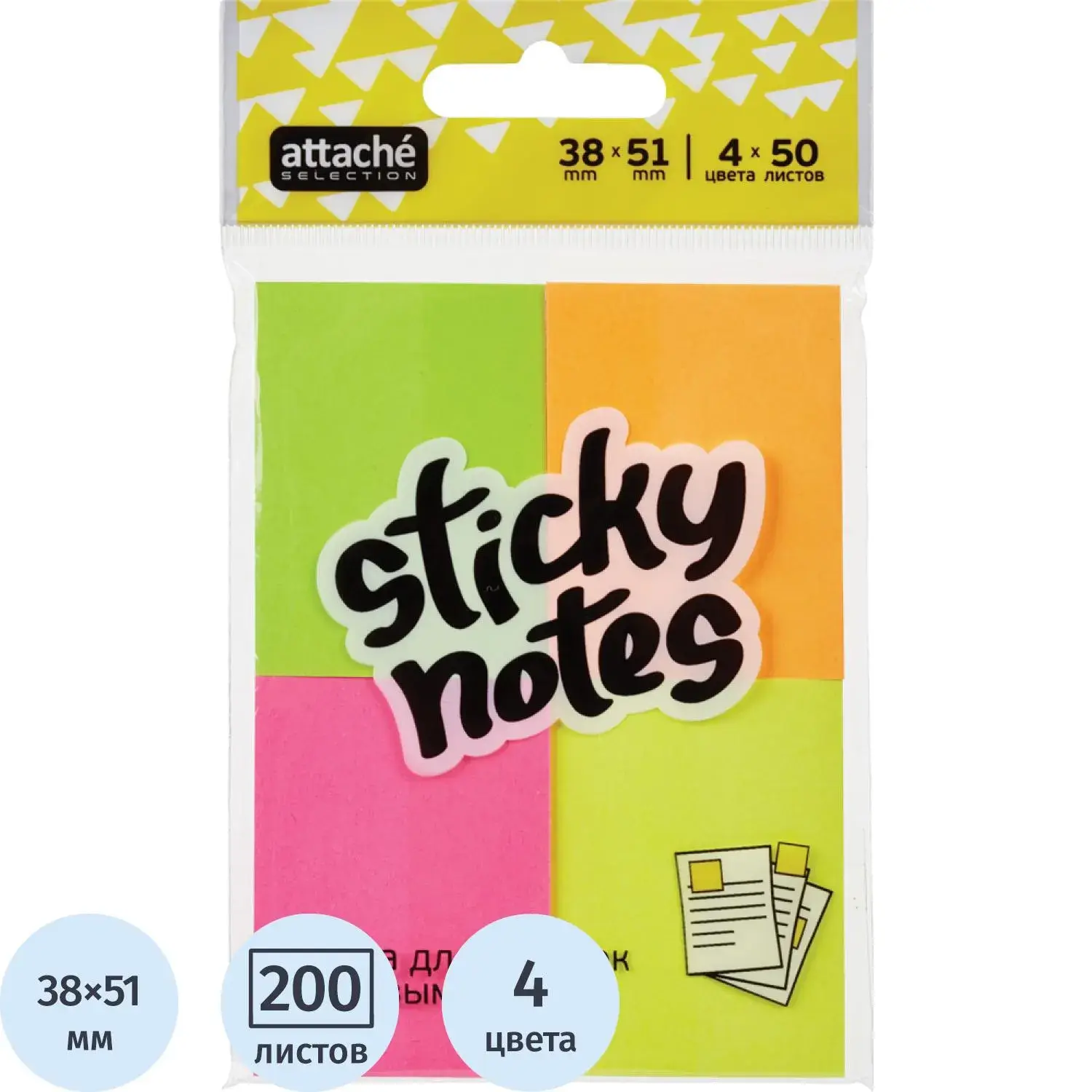 Стикеры Attache Selection с клеев. краем 38х51, неон, 4 цвета 50х4 – купить за 112 ₽ | Книги в дом