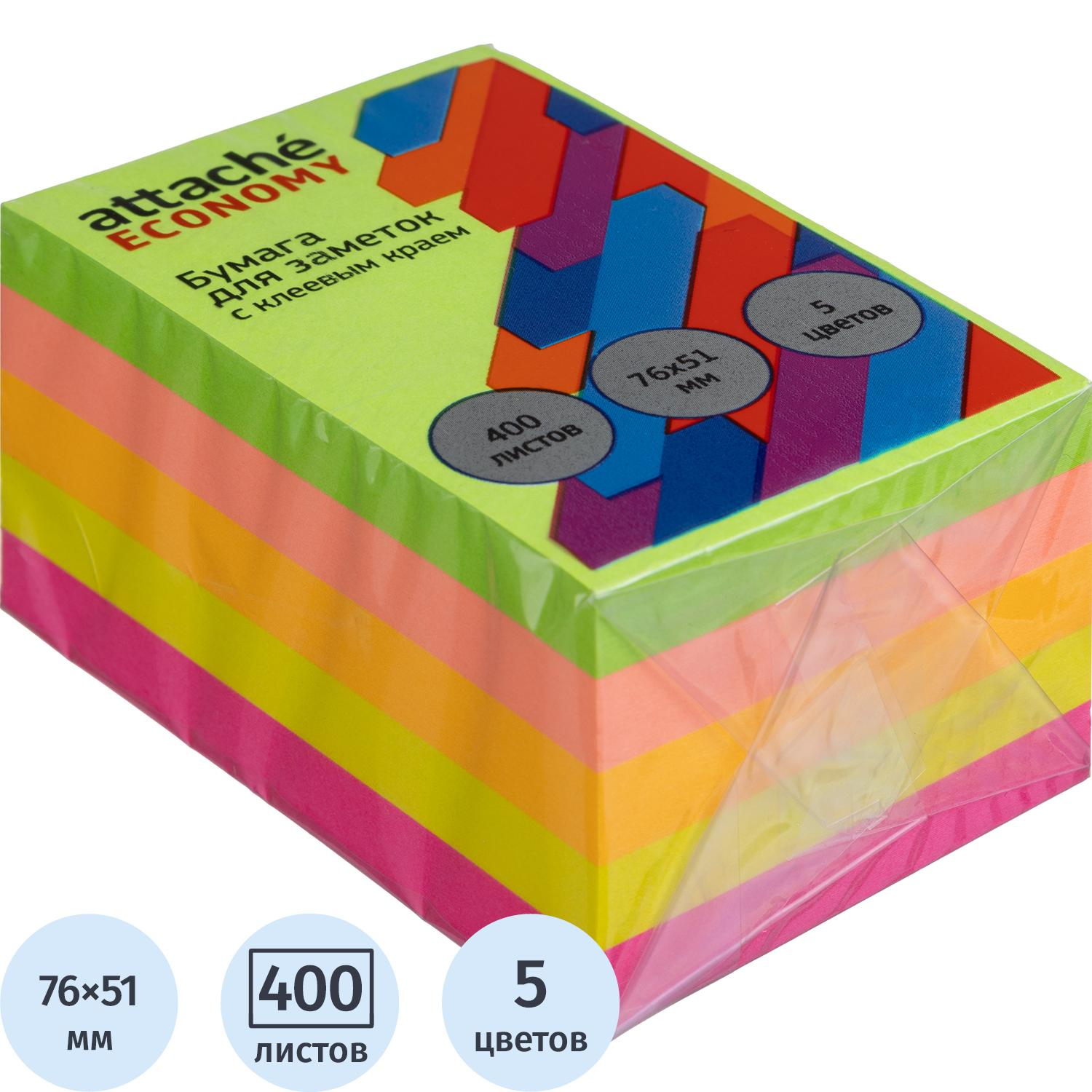 Стикеры с клеев.краем 76x51 мм, 400 лист, 5 неоновых цв – купить за 378 ₽ | Книги в дом