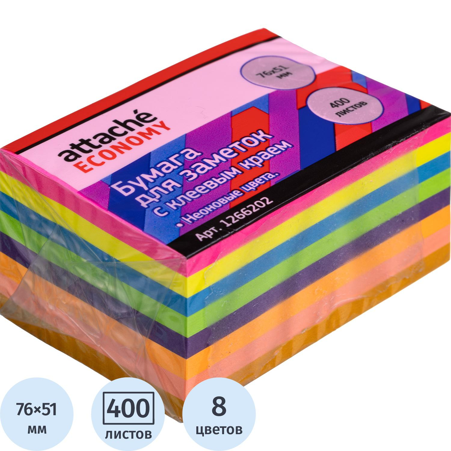 Стикеры с клеев.краем 76x51 мм, 400 лист, 8 неоновых цв – купить за 454 ₽ | Книги в дом