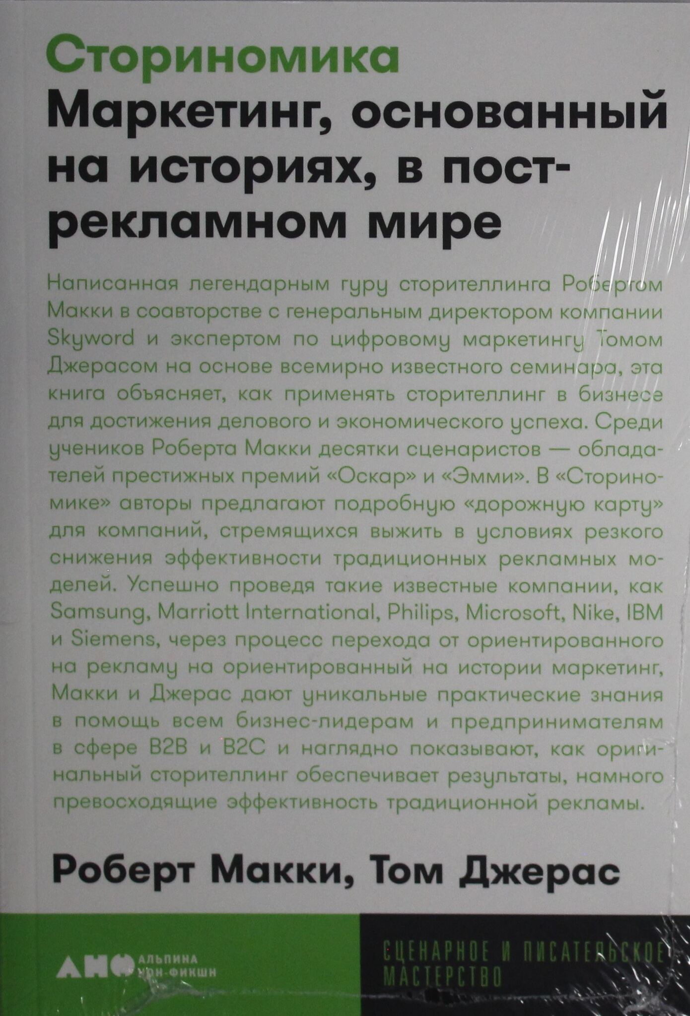Написанная легендарным гуру сторителлинга Робертом Макки в соавторстве с генеральным директором компании Skyword Томом Джерасом на основе всемирно известного семинара, эта книга объясняет, как применять сторителлинг в бизнесе для достижения делового и экономического успеха. Среди учеников Роберта Макки десятки сценаристов - обладателей престижных премий "Оскар" и "Эмми". В основе его популярного семинара лежит уникальная книга "История на миллион долларов", посвященная искусству создания историй. В новой книге "Сториномика" Макки совместно с экспертом по цифровому маркетингу Томом Джерасом предлагает подробную "дорожную карту" для компаний, стремящихся выжить в условиях резкого снижения эффективности традиционных рекламных моделей. Успешно проведя такие известные компании, как Samsung, Marriott International, Philips, Microsoft, Nike, IBM и Siemens, через процесс перехода от ориентированного на рекламу на ориентированный на истории маркетинг, Макки и Джерас предлагают эти уникальные практические знания в помощь всем бизнес-лидерам и предпринимателям. Опираясь на примеры десятков ведущих брендов в сфере B2B и B2C, использующих маркетинговые стратегии на основе сторителлинга, "Сториномика" наглядно показывает, как оригинальный сторителлинг обеспечивает результаты, намного превосходящие эффективность традиционной рекламы. Как бренды будут взаимодействовать со своими потребителями уже в обозримом будущем? "Сториномика" отвечает на этот вопрос.