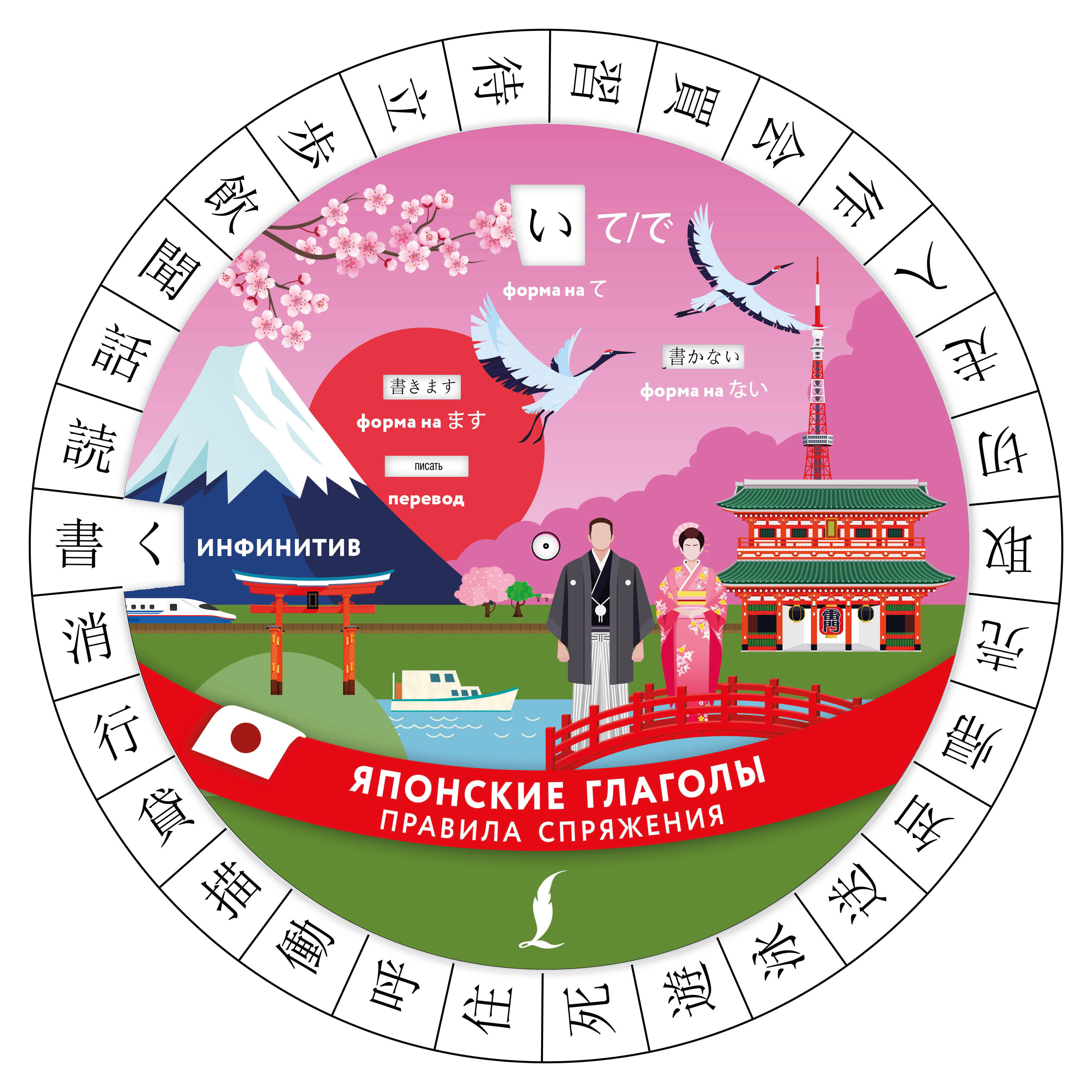 Диск-вертушка "Японские глаголы. Правила спряжения" — незаменимый помощник для всех, кто изучает японский язык! Здесь вы найдете 30 самых часто употребляемых глаголов; благодаря компактности пособия вы сразу же увидите четыре основные формы глаголов и их перевод. Наглядная подача материала позволит легко и быстро выучить основные типы глаголов и правила их спряжения.
