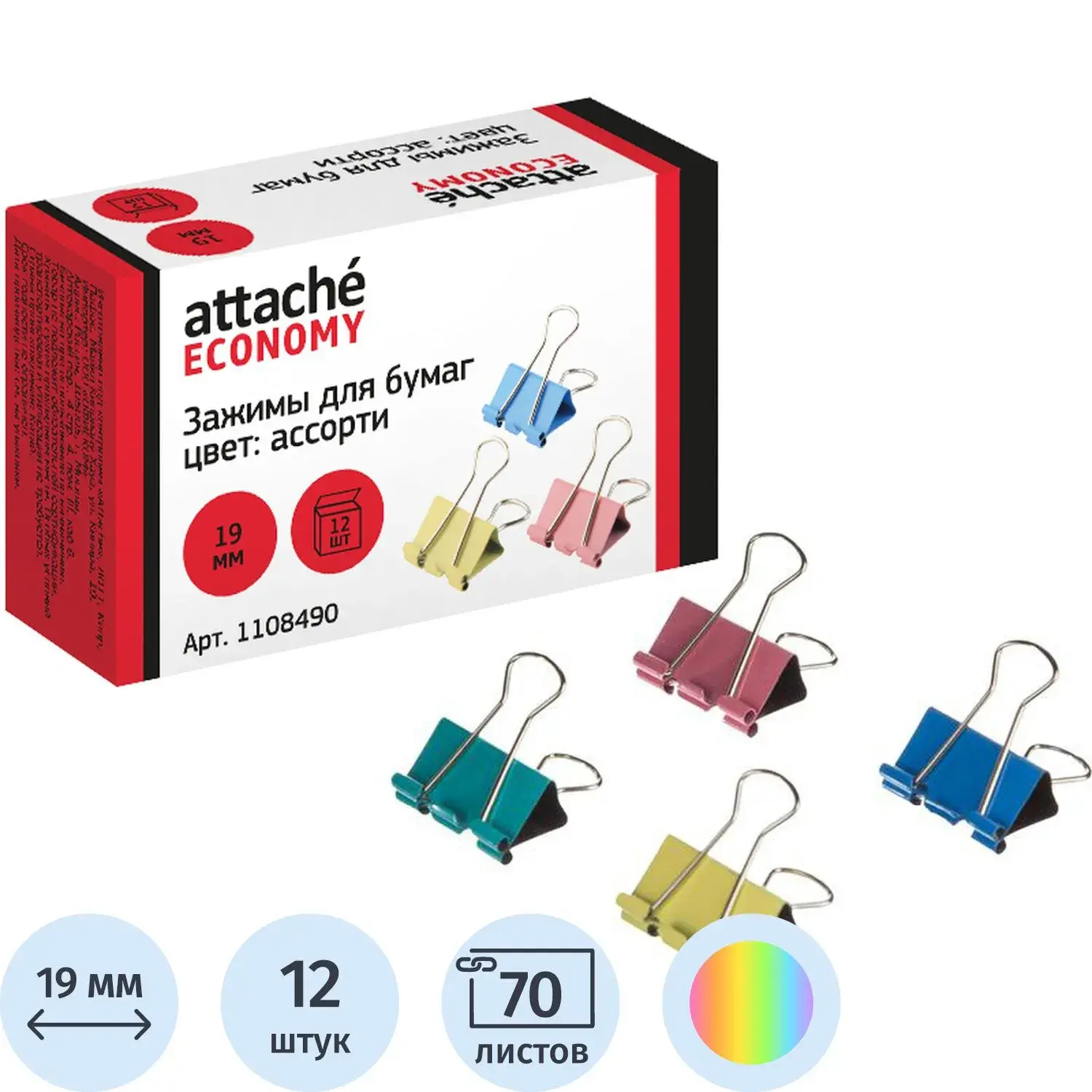 Зажимы для бумаг 19мм 12шт/уп Attache Economy, цветные, в карт.коробке – купить за 77 ₽ | Книги в дом