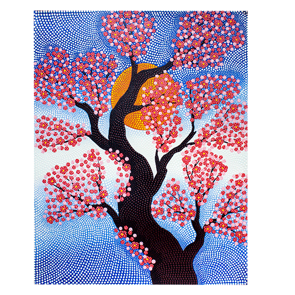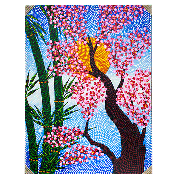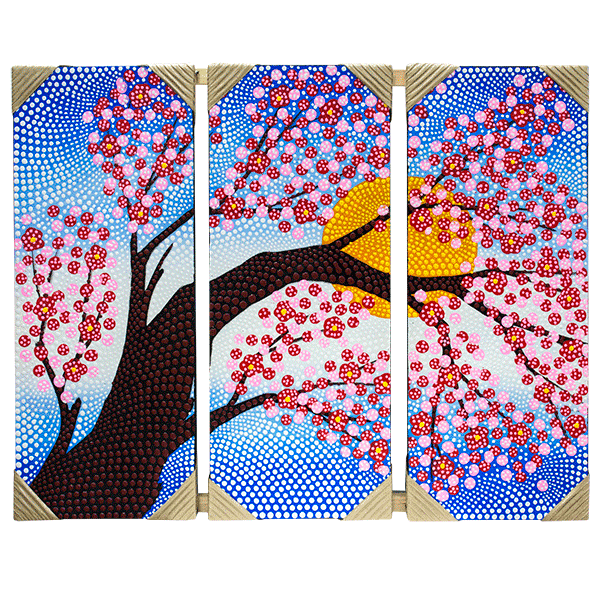 - Техника исполнения: Каждая картина создана путём нанесения множества отдельных точек, которые вместе образуют гармоничные композиции.